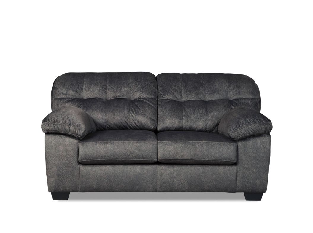 The Accrington Granite Loveseat from Ashley Furniture is the perfect blend of decadent comfort and contemporary flair. With Tufted box cushioning and thick pillow top armrests brilliantly merge style and a sumptuous feel. Wonderful to the touch, the Accrington Loveseat features a granite gray fabric for that trendy chic look.