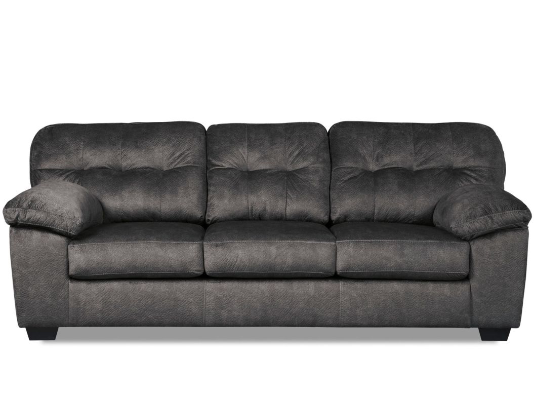 The Accrington Granite Sofa from Ashley Furniture is the perfect blend of decadent comfort and contemporary flair. With Tufted box cushioning and thick pillow top armrests brilliantly merge style and a sumptuous feel. Wonderful to the touch, the Accrington Sofa features a granite gray fabric for that trendy chic look.