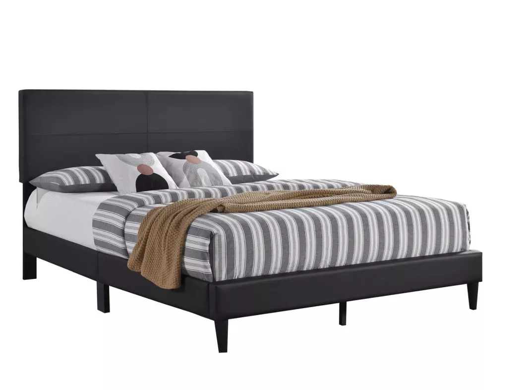 Create a sleek and contemporary sleeping sanctuary with our platform bed, designed for both style and versatility. Featuring a distinctive rectangular headboard with accent stitching, this bed offers a chic focal point for any bedroom. Available in your choice of black leatherette or grey linen fabric, you can effortlessly tailor the look to match your personal design aesthetic. With an adjustable headboard and no need for a box spring, this bed combines modern style with practical function.