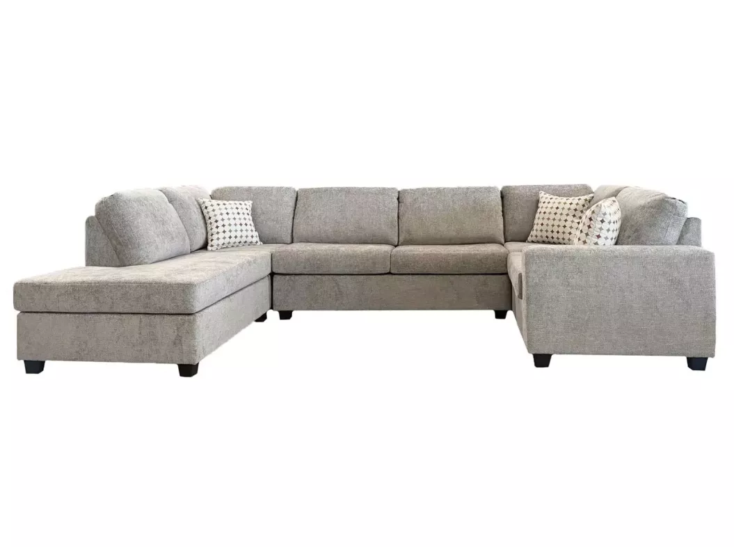 Create a warm, inviting living space with the Brady Military Sectional. This spacious 3-piece design offers generous seating, plush cushions, and soft textured upholstery for exceptional everyday comfort. Its versatile configuration includes your choice of a left- or right-facing lounger, making it easy to tailor the layout to your home. Stylish accent pillows complete the look, bringing a modern yet cozy touch to any room.