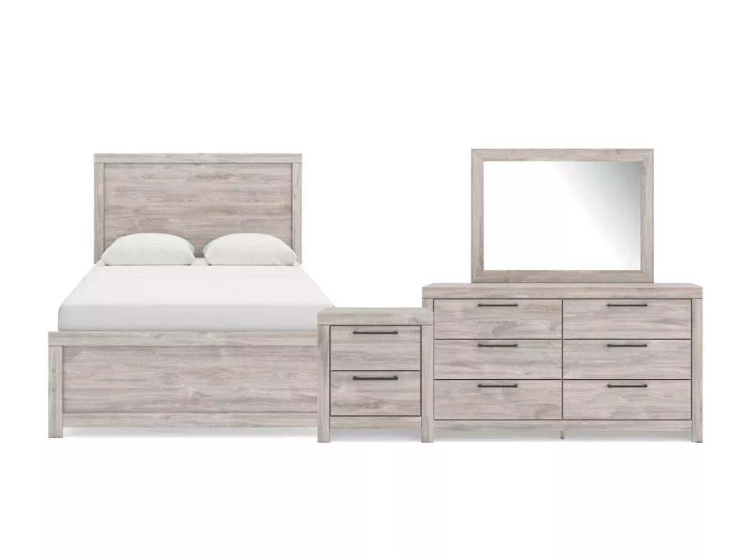 Bright and airy, the Broachmyn Bedroom Collection evokes the tranquil vibe you long for in your dream destination. The light gray finish over replicated oak grain whispers “inviting” and “relaxed,” creating a laid-back look that feels both stylish and comfortable. Designed with everyday practicality in mind, this coordinated bedroom set includes a dresser, mirror, bed and nightstand—bringing together versatile storage and a welcoming aesthetic you’ll love coming home to.