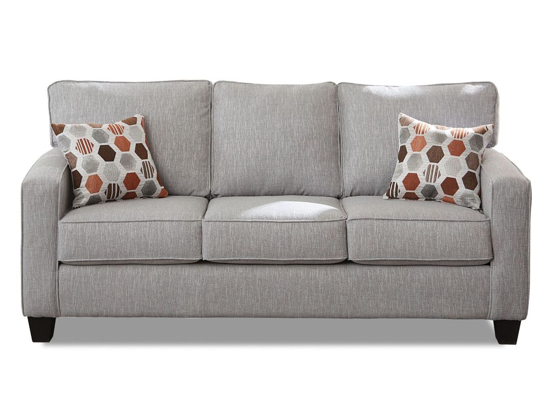 A squared design makes for a formal delight with this Chennay Silver Sofa that features wonderfully designed accent pillows. A tasteful combination of these elements, this ensemble is one that will serve to impress.