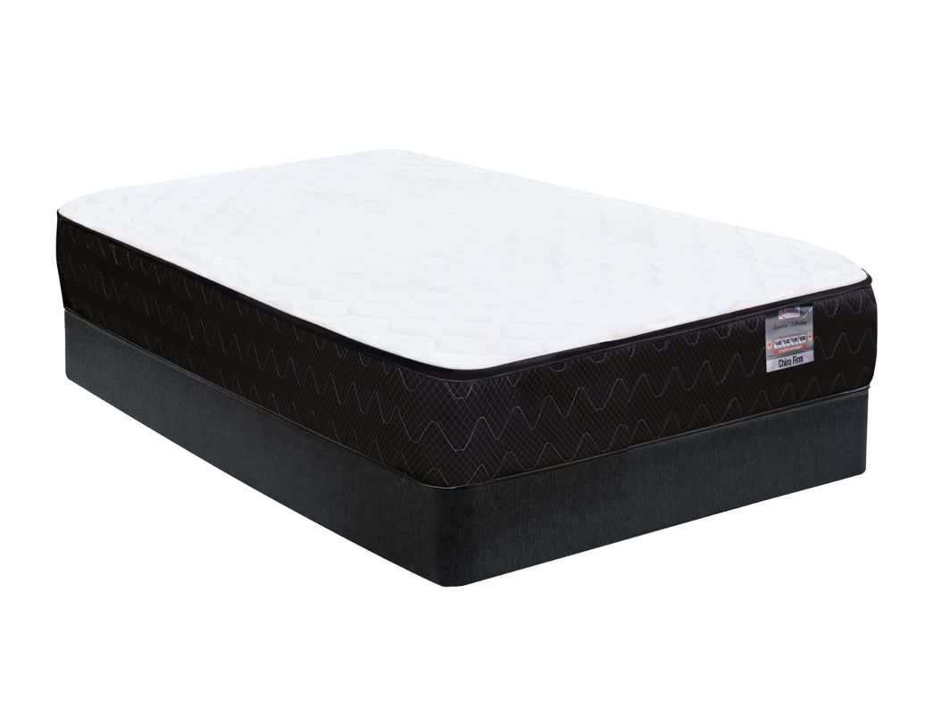 The Chiro Firm Full Mattress Set features 7” high, 13.5 gauge round Bonnell Coils with edge guard, are very strong and provide an extra firm support core that conforms to your bodies shape, while providing ultimate support to your spine while maximizing the sleeping surface.