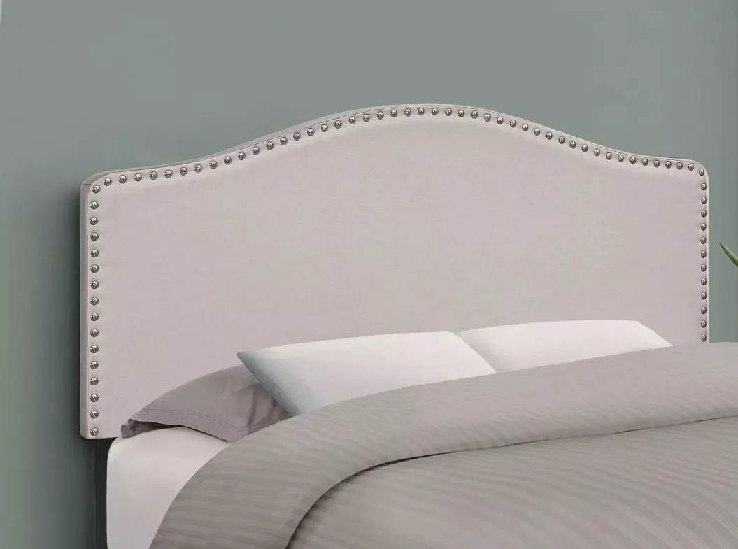 Combining modern materials and a classic silhouette, this upholstered headboard panel in a beige linen-look fabric brings timeless style to any bedroom. Silver-finish nailheads create an eye-catching frame around the gently arched top and straight sides. Upholstered with extra padding and smooth-to-the-touch fabric, this headboard panel provides an ultra-soft feel for a comfortable night's sleep. Streamlined and compact, this headboard adjusts easily to your desired height with any new or existing bed frame and is ideal for any size bedroom.