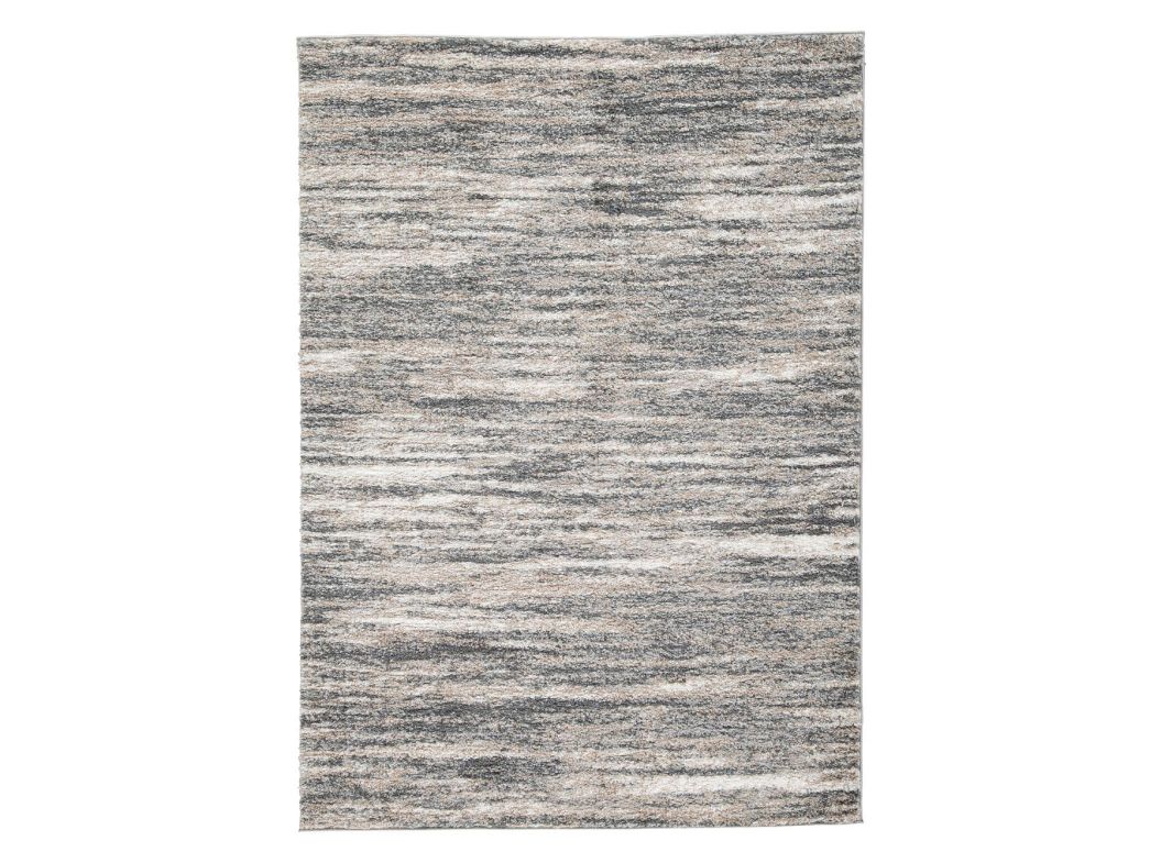Indulge in retro revival with the sumptuous Gizela shag rug. Its plush pile is loaded with feel-good texture. With a striped design in ivory, beige and shades of gray, the rug's harmonious hues make it a tasteful choice for so many spaces.