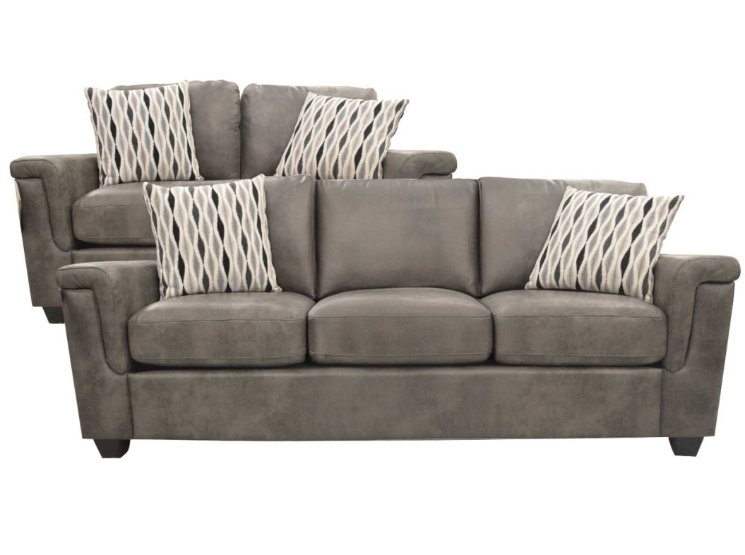 Elevate your living room with the luxurious Grey leather-look sofa and loveseat, designed to bring both style and comfort to your space. Crafted with high-quality materials, this sofa set is not only sleek and modern but also durable and long-lasting. The neutral grey colour makes it easy to match with existing decor, while the included pillows add a extra coziness. Perfect for lounging, entertaining, or simply relaxing after a long day, the Grey Sofa Set is a must-have for any home.