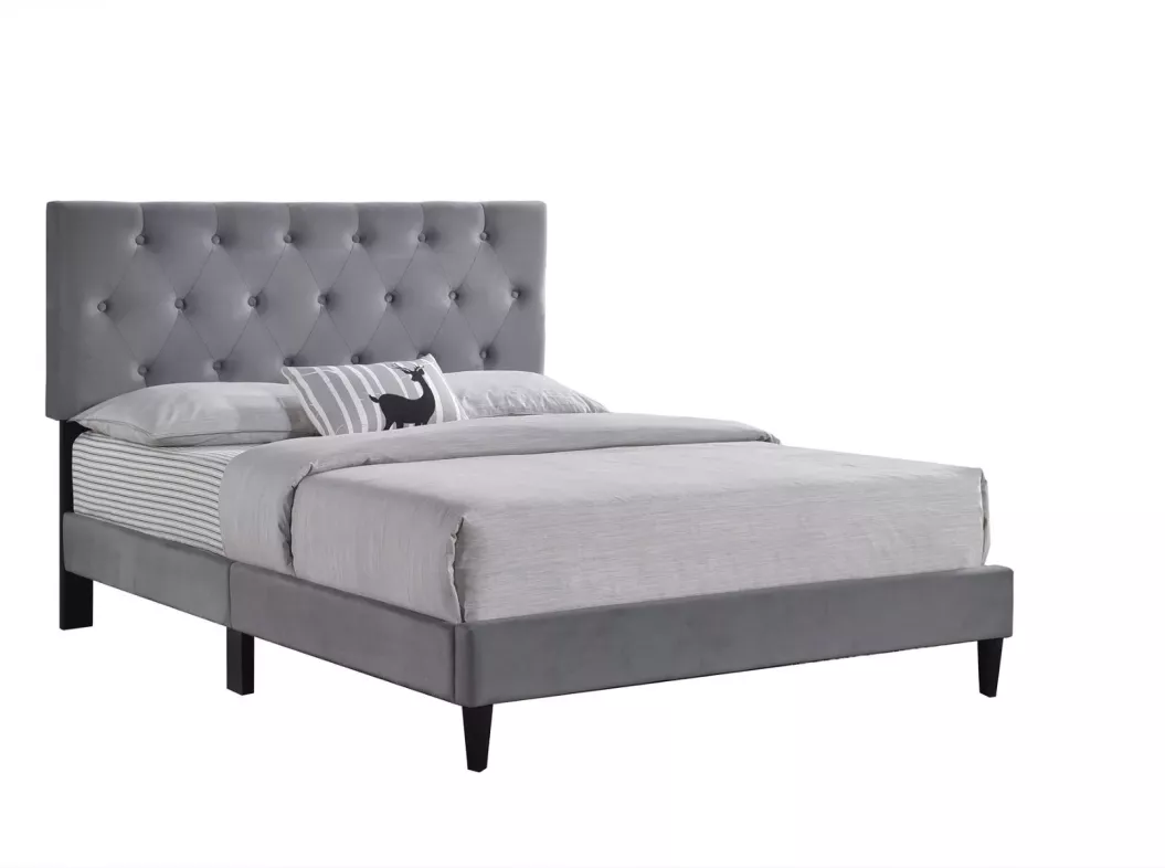 Create the ultimate contemporary sleeping space with our versatile platform bed, designed to elevate your bedroom’s style and functionality. Featuring a distinctive rectangular headboard with button detailing, this bed offers a unique, elegant look. Choose between rich black or soft grey velvet fabric to complement your personal décor. With an adjustable headboard and a platform design that eliminates the need for a box spring, this bed blends sophistication with practical comfort.