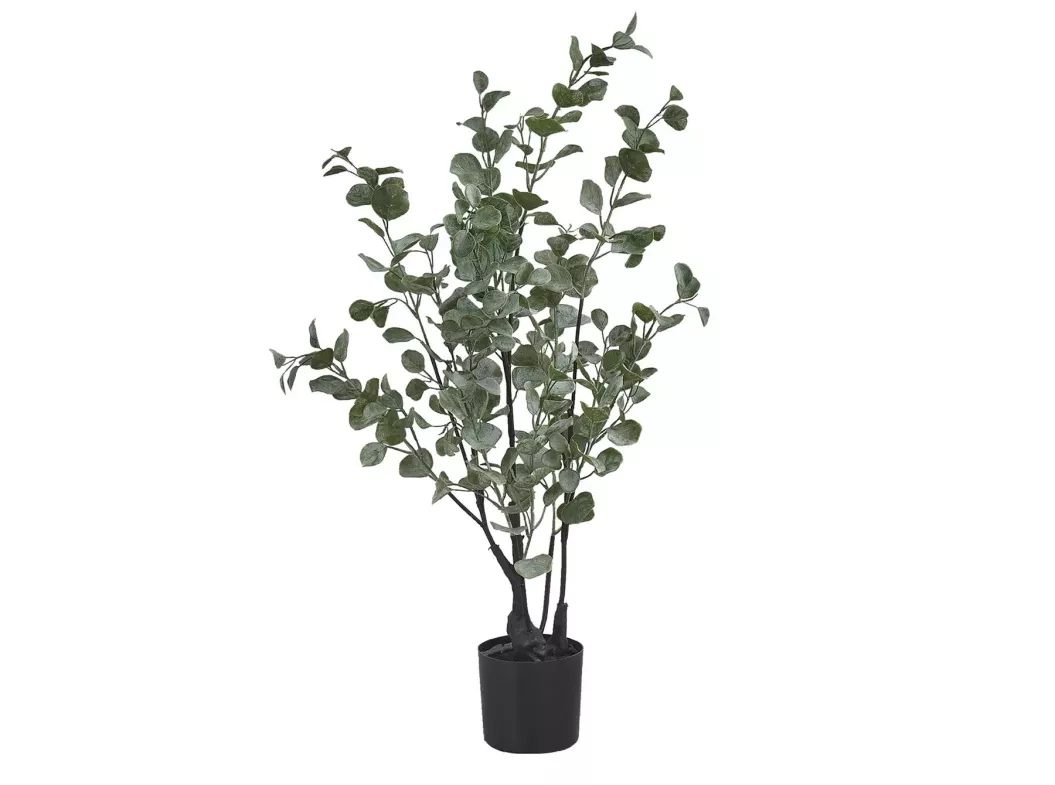 - Add a touch of nature to any space with this 35" tall indoor artificial Eucalyptus tree in a black pot