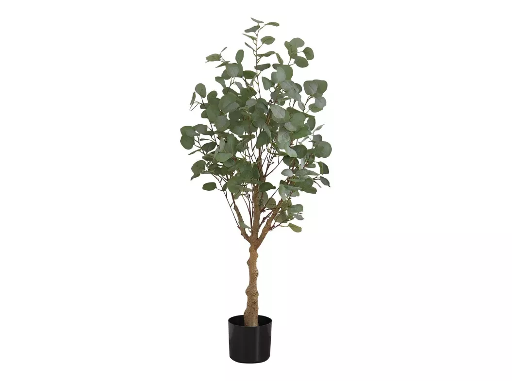 - Add a calming burst of greenery to any floor of your home or office with this 46" tall artificial indoor eucalyptus tree in a 5" black pot.