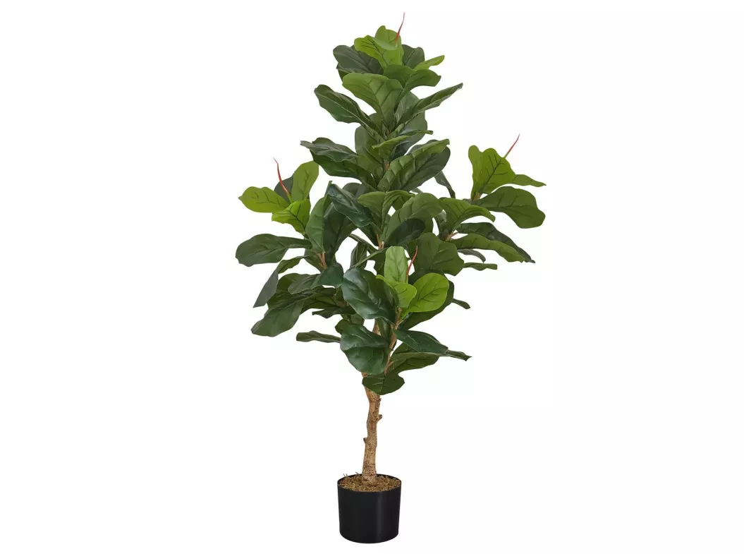 This artificial, indoor, 47" tall Fiddle tree makes any room more stylish and inviting. Firmly fixed in a simple modern, black 5" pot, this faux Fiddle has 72 leaves in green hues that look incredibly realistic and lifelike. Made from high-quality materials, this environmentally friendly artificial plant is extremely durable and has adjustable leaves that can be arranged for a full and natural look. With no maintenance and no watering needed, this potted plant provides the perfect care-free decorative accent for the home or office bringing a natural and welcoming feel. Add this artificial plant to any room for a stylish look that will always be on-trend!