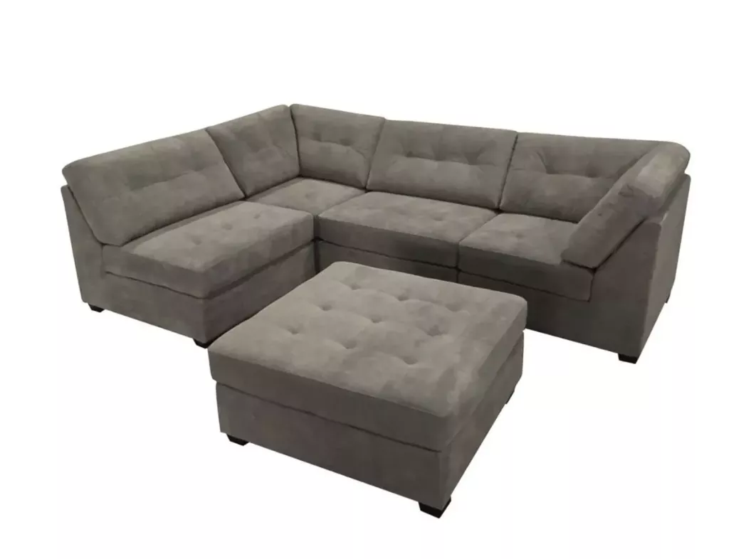 Create your own configuration to fit your needs. Revitalize your living area with the Kirkland Modular Charcoal 4-Piece Sectional, crafted for ultimate comfort and sophisticated style. This generous seating arrangement beckons relaxation, making it ideal for family get-togethers or intimate movie nights. Wrapped in plush, durable fabric, it boasts a contemporary look that seamlessly fits any decor. Enhance your home with this exquisite centerpiece that merges elegance with practicality, ensuring a warm and inviting atmosphere for you and your guests. It's unique modular design allows you to expand the set to fit any living room space. Matching ottoman sold separately.