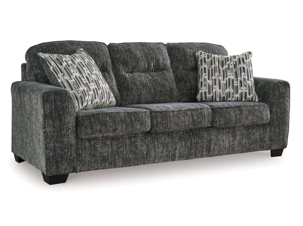 This sofa speaks to those drawn to fresh, contemporary style with richly neutral appeal. Subtle and sophisticated, the plush upholstery and dark tri-block legs are a natural complement for so many color schemes. Two accent pillows make the seating even more welcoming. Curling up on this sofa to enjoy a night in is never out of the question.