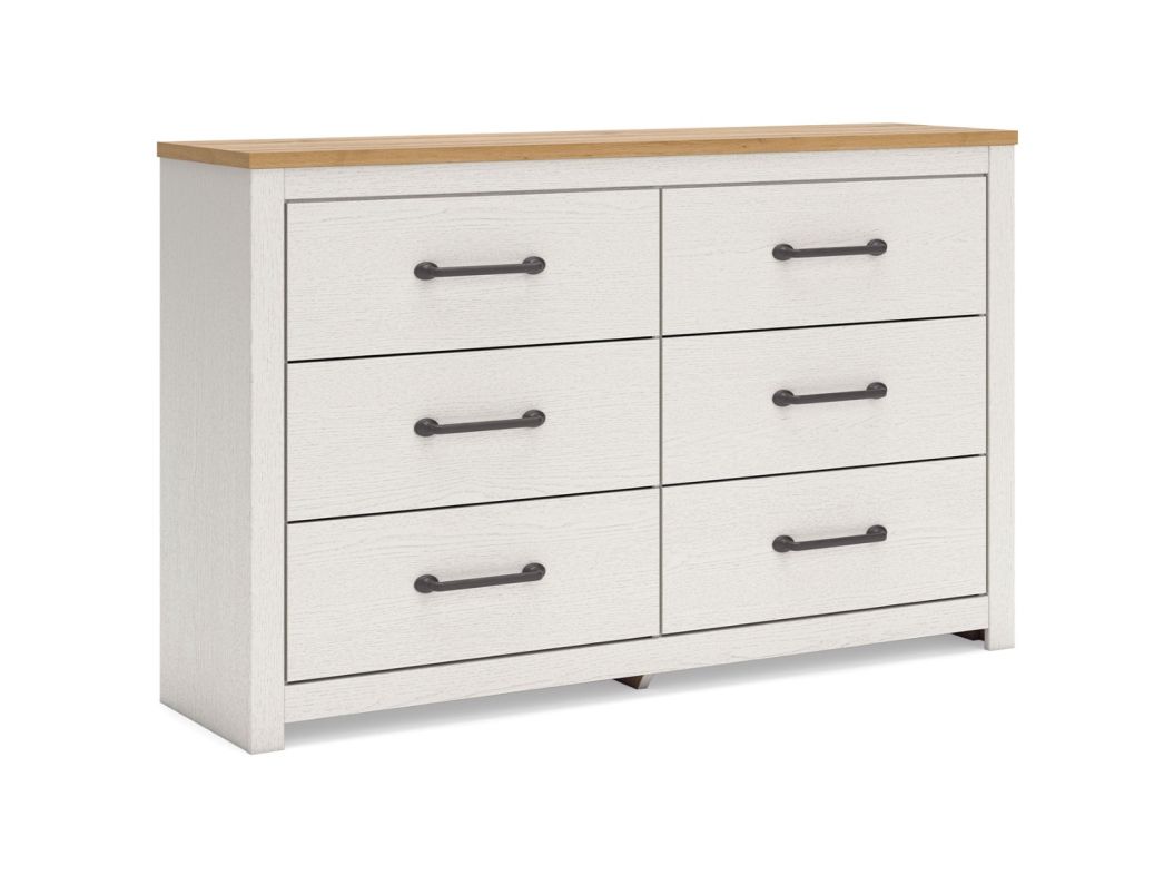Create a serene countryside retreat with this dresser. The two-tone design effortlessly adds farmhouse style, while framed drawer fronts with pewter-tone handles enhance its charming appeal. Looking for furniture that offers storage and a peaceful escape from your daily routine? This piece is just what you need.