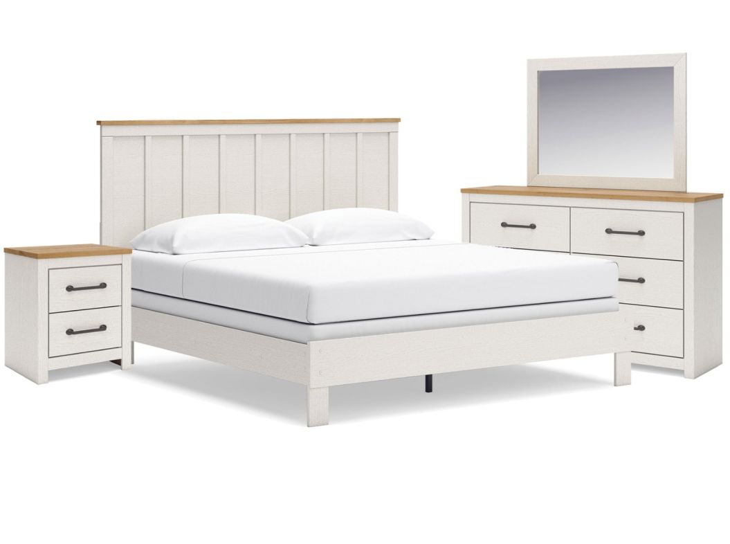 Create a serene countryside retreat with this king bedroom set. A two-tone design effortlessly adds farmhouse style, while the clean-lined panel headboard enhances its charming appeal. Looking for furniture that offers a peaceful escape from your daily routine? This bed is just what you need.