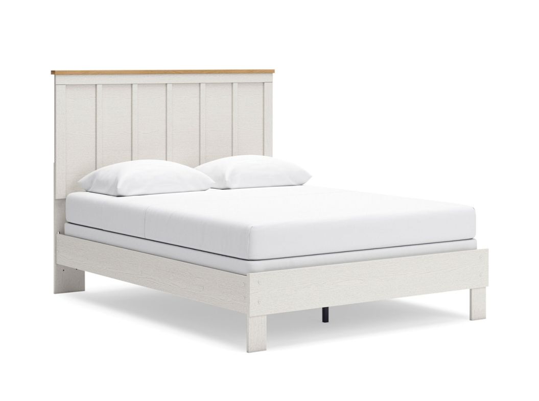 Create a serene countryside retreat with this queen bed. A two-tone design effortlessly adds farmhouse style, while the clean-lined panel headboard enhances its charming appeal. Looking for furniture that offers a peaceful escape from your daily routine? This bed is just what you need.