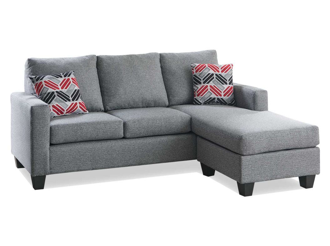 The Maui Steele 2-Piece Sectional from Carolina Girl Furniture is simple and casual, wrapped in a cool chenille fabric. Featuring attached accent pillows, square arms, ultra-plush cushioning and is perfect for any small space.