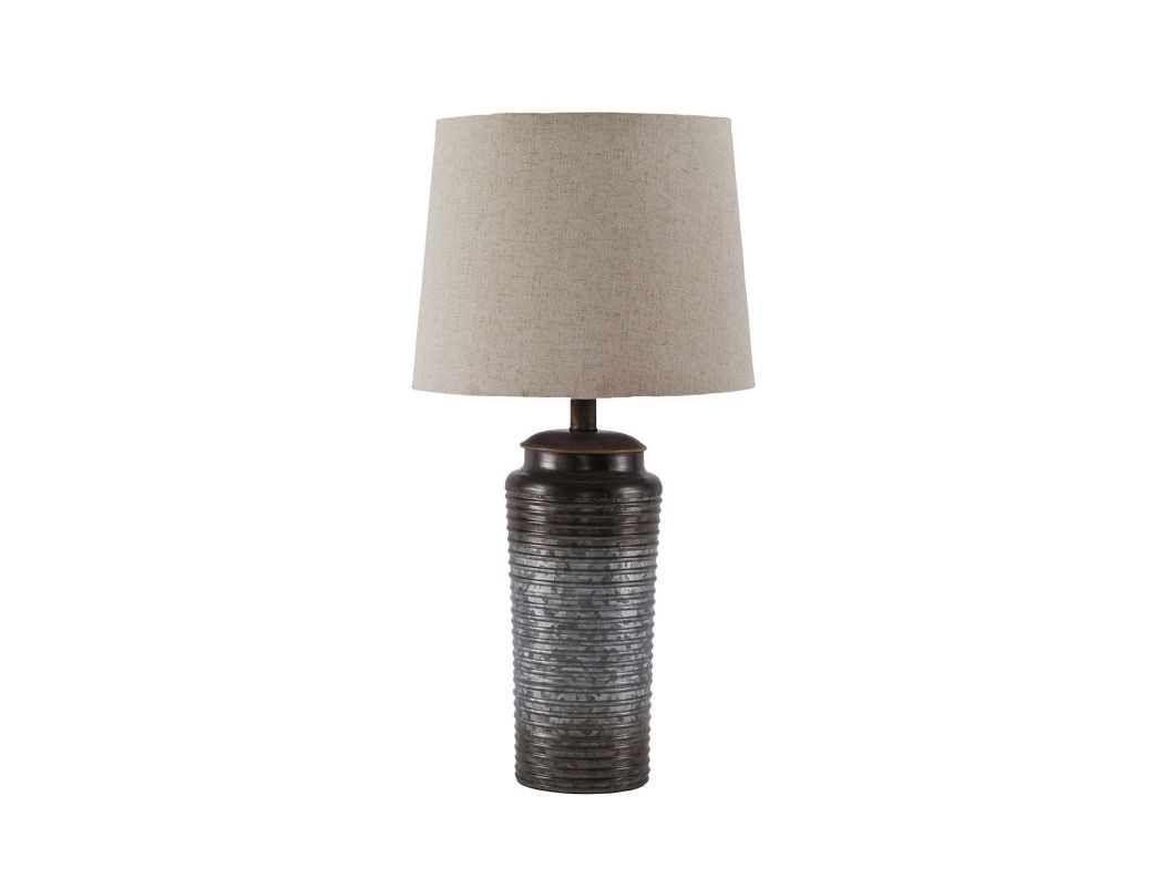 Grace your space with the earthy elegance of this metal table lamp. A top-and-bottom ombre effect on the galvanized metal base is delightfully different. Ribbed texturing adds that much more interest.