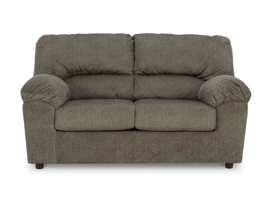 Looking for a peaceful retreat? This loveseat is at your service. Its super plush padding and substantial pillowtop armrests make for an easy getaway. The loveseat's subtle warm taupe hue and pleasantly soft texture are so appealing that you won’t want to leave.