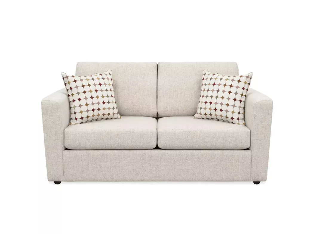 This inviting loveseat brings a fresh, modern look to any living space. Upholstered in a soft, neutral fabric, it features plush seat and back cushions that offer comfortable support while maintaining a clean, tailored appearance. The simple track arms and compact footprint make it ideal for smaller rooms, apartments, or as a complement to a matching sofa.