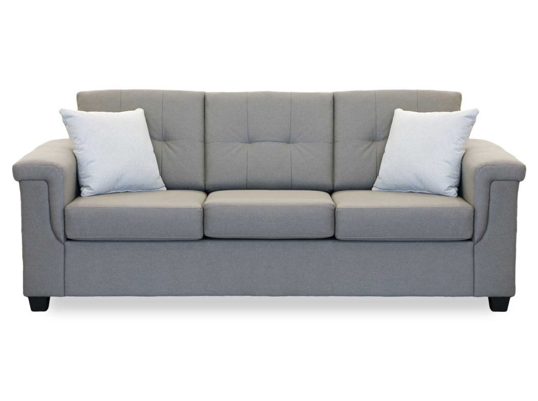 Upgrade your living space with the Pony Slate Sofa featuring a soft stylish grey fabric that effortlessly blend comfort and modern design. Includes two plush pillows, making it the perfect spot to relax or entertain guests. Pair it with the matching Pony Slate Loveseat which will compliment any decor while providing a cozy atmosphere.