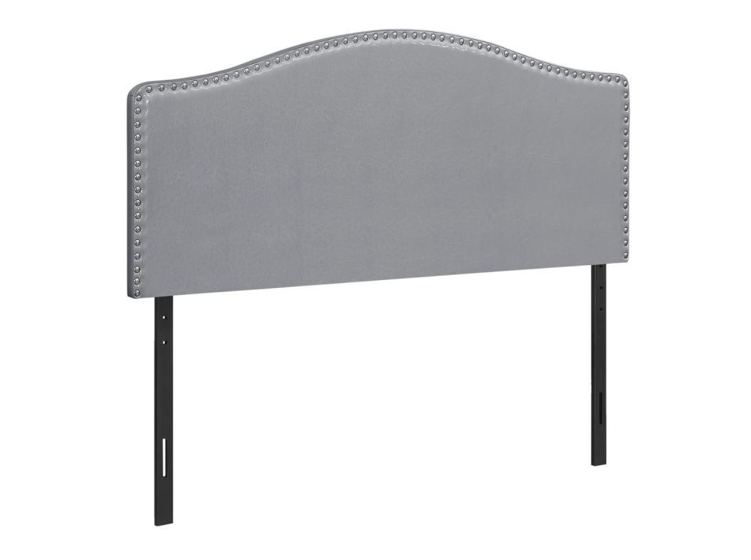 Combining modern materials and a classic silhouette, this upholstered headboard panel in a grey leather-look fabric brings timeless style to any bedroom. Silver-finish nailheads create an eye-catching frame around the gently arched top and straight sides. Upholstered with extra padding and smooth-to-the-touch fabric, this headboard panel provides an ultra-soft feel for a comfortable night's sleep. Streamlined and compact, this headboard adjusts easily to your desired height with any new or existing bed frame and is ideal for any size bedroom.