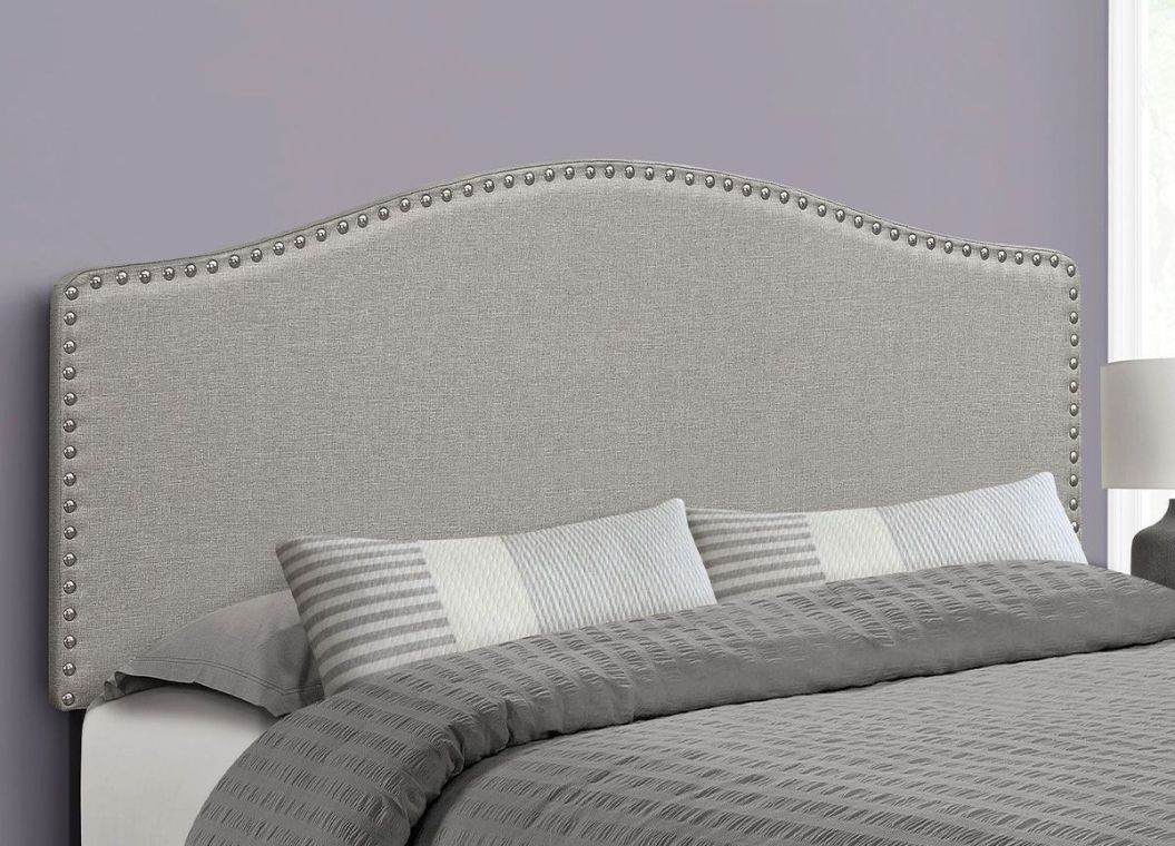 Queen Grey Linen Headboard w/ Nailheads