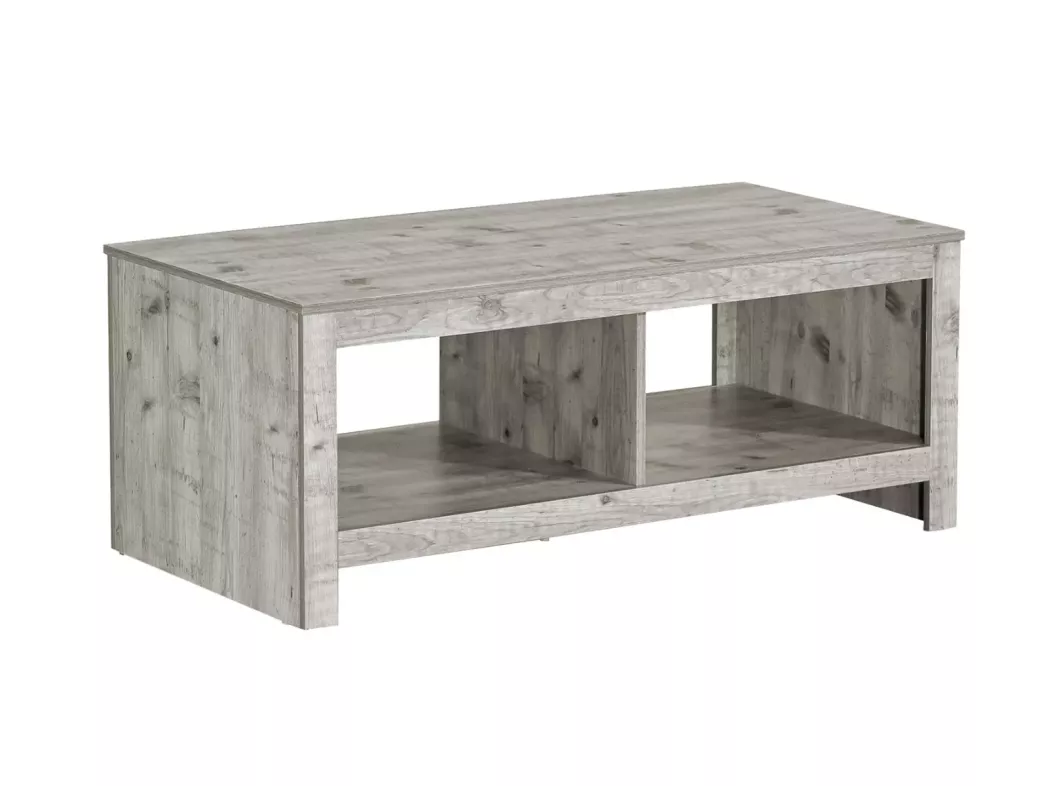 Rejuvenate your living space with our sleek 44"l rectangular coffee table finished in a smooth rustic grey laminate, a perfect blend of fashionable style and functional design. Crafted with a transitional aesthetic, this durably designed stylish coffee table serves as the ultimate centerpiece for your living room with an easy to clean top, transitioning effortlessly between casual get-togethers and upscale cocktail soirées. The spacious, integrated bottom shelves provides ample storage for magazines, books, or decorative items, keeping your space tidy and organized. With our easy-to-assemble instructions and all hardware included, you can start enjoying your new coffee table in no time. We also include a 5 year limited warranty against manufacturer defects so you can rest easy knowing that your investment is protected. Transform your living room into a trendy haven with this grey reclaimed wood-look coffee table—where style meets functionality!
